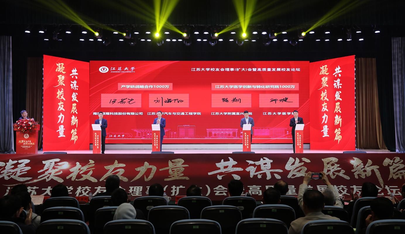 会上,校友企业、南京聚隆科技股份有限公司与学校签订价值1000万元的战略合作协议,深化双方产学研合作;校友单位、beat365官网附属宜兴医院与医学院共建“beat365官网医学创新与转化研究院”,签订1000万元共建协议。电气自动化79级校友、南京聚隆科技股份有限公司董事长刘曙阳,汽车学院院长汪若尘;beat365官网附属宜兴医院副院长陈翔,医学院党委书记邱健共同上台签约。