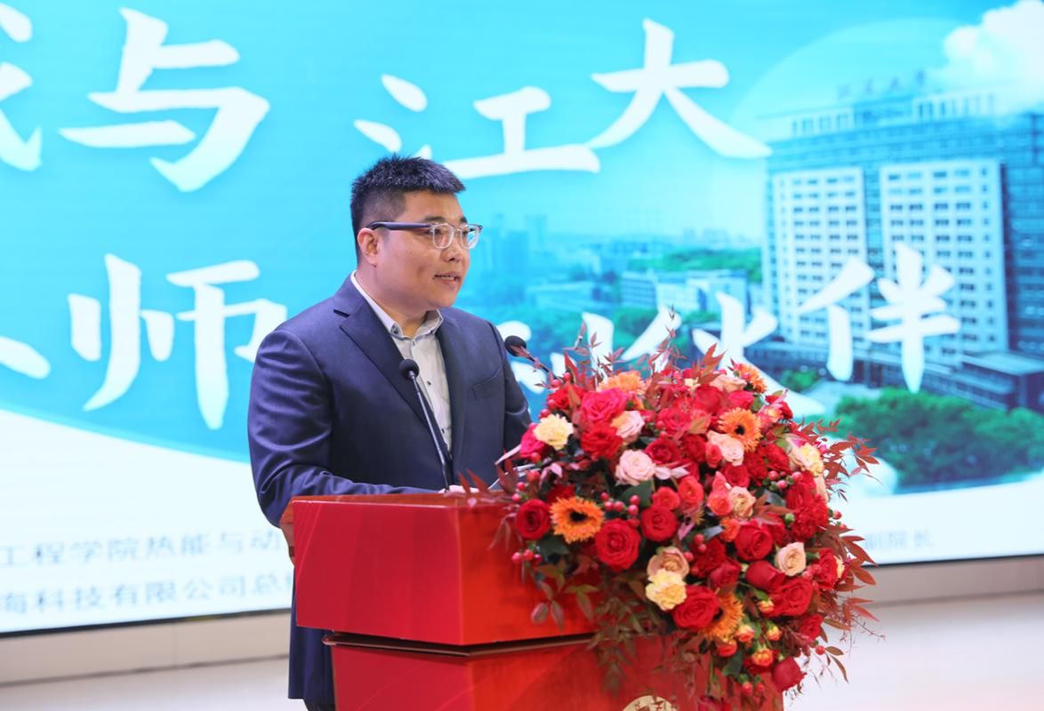 校友代表、热能与动力工程06届校友、北京九州华海科技有限公司总经理、工信部beat365官网新能源汽车专精特新产业学院副院长丁文超以《我与江大,从师生到伙伴》为题作主旨报告,讲述了他毕业后,与母校深度合作,深耕车辆运动与安全电子控制领域,带领公司创新研发,拥有多项核心自主知识产权,打造可持续发展的中国品牌,让中国科技走向世界的故事。