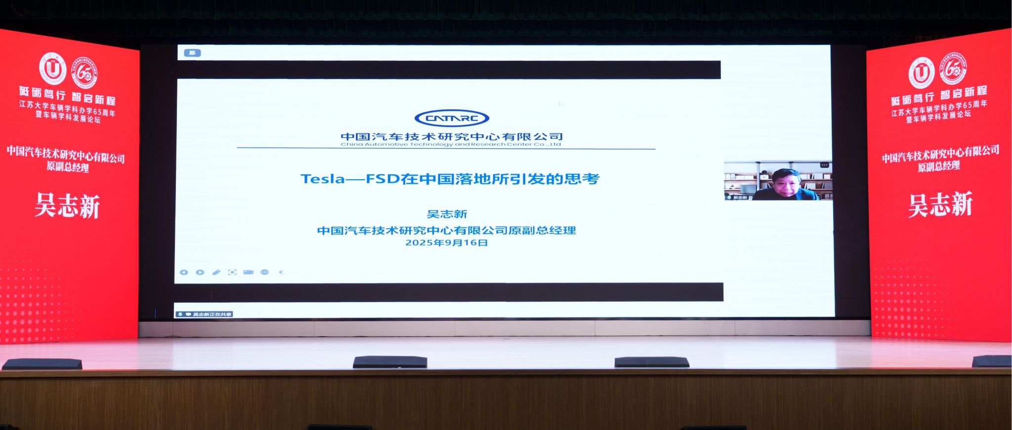 论坛上,工业和信息化部装备工业司原一级巡视员钱明华校友、中国汽车技术研究中心有限公司原副总经理吴志新校友、蔡英凤分别从中国汽车工业的发展现状与展望、Tesla-FSD在中国落地所引发的思考、beat365官网车辆学科建设与发展规划等方面作主旨报告。