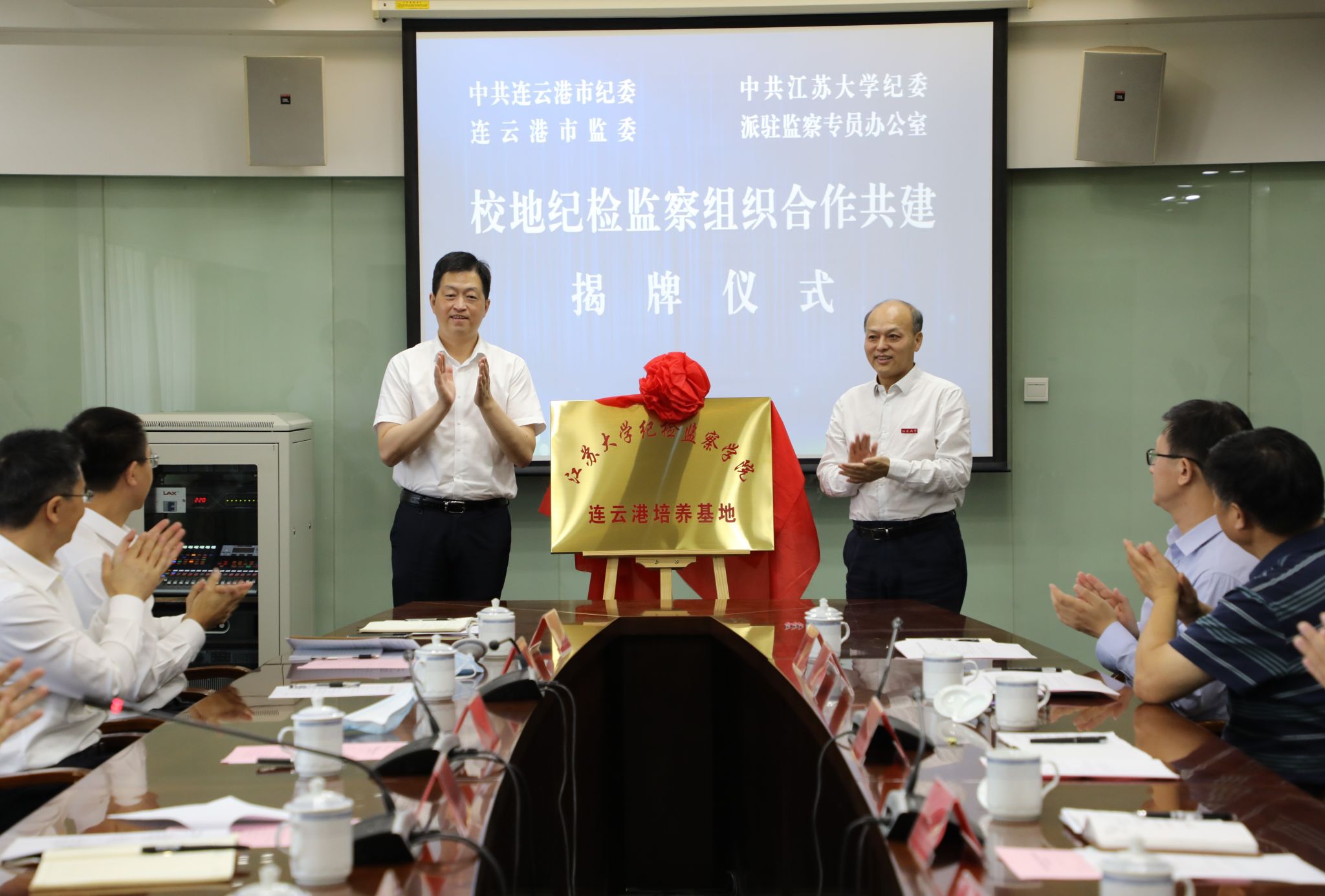 高庆国与连云港市纪委副书记、市监委副主任、市委巡察办主任戴涛分别代表双方签署校地纪检监察组织合作协议。