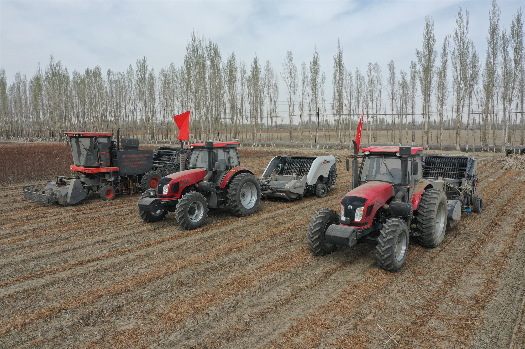 农机在田里作业,四周风尘仆仆。