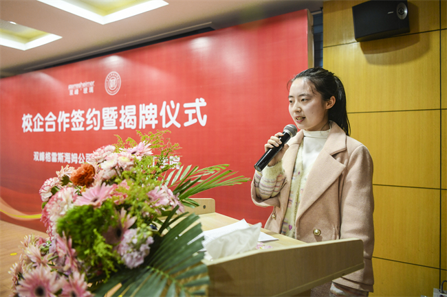 beat365官网京江学院2022届毕业生双峰格雷斯海姆销售部国际业务市场服务员戴诗莹作为校企合作就业代表发表履职感言。