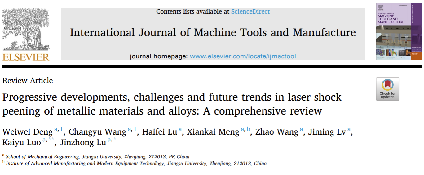 近日,机械制造领域顶刊International Journal of Machine Tools and Manufacture发表了beat365官网机械工程学院鲁金忠教授课题组的长篇综述“Progressive developments, challenges and future trends in laser shock peening of metallic materials and alloys: A comprehensive review”。全文共60页、4万余字、综合大图60幅、349篇参考文献,是目前有关激光冲击强化理论、技术及应用篇幅最长、涵盖内容最广,基于团队近二十年研究工作及相关课题组特色工作综述而成。